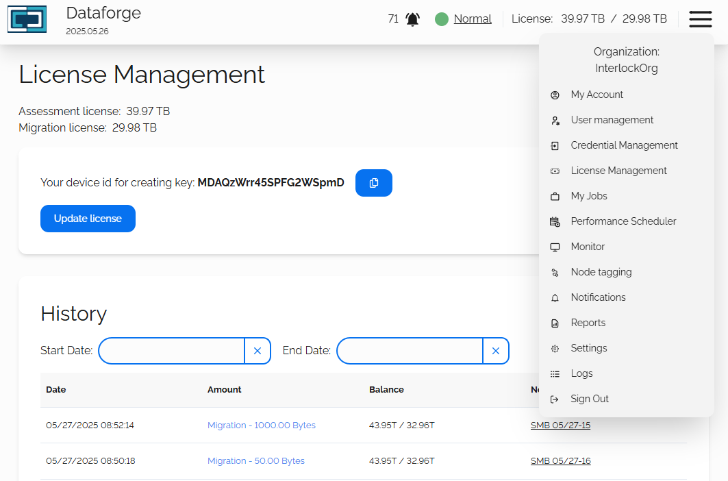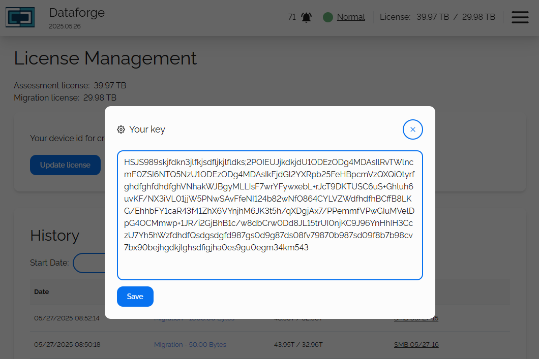 A DataForge license is issued based on the contractual request of Assessment and Migration size. When you first provision the DataForge server, you will have an automatic 20 Terabyte assessment license. This will allow you or your organization the ability to trial our migration software as well as discovering the data capacity for your source storage.