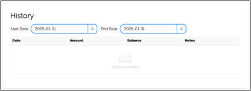 - A report detailing: Date. Amount, Balance and Notes is generated and displayed