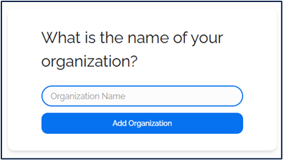 The first time you open DataForge, the Create an organization page appears. Enter your organization’s name in the Organization Name field and press Add Organization.