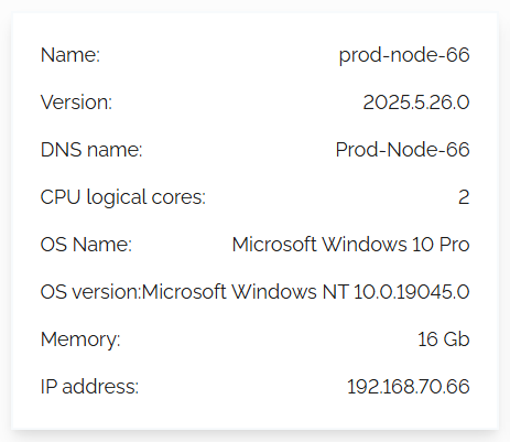 This is the software version of the migration node. In major releases this should match the front-end and back-end versions, but minor releases and hot fixes may show different information.